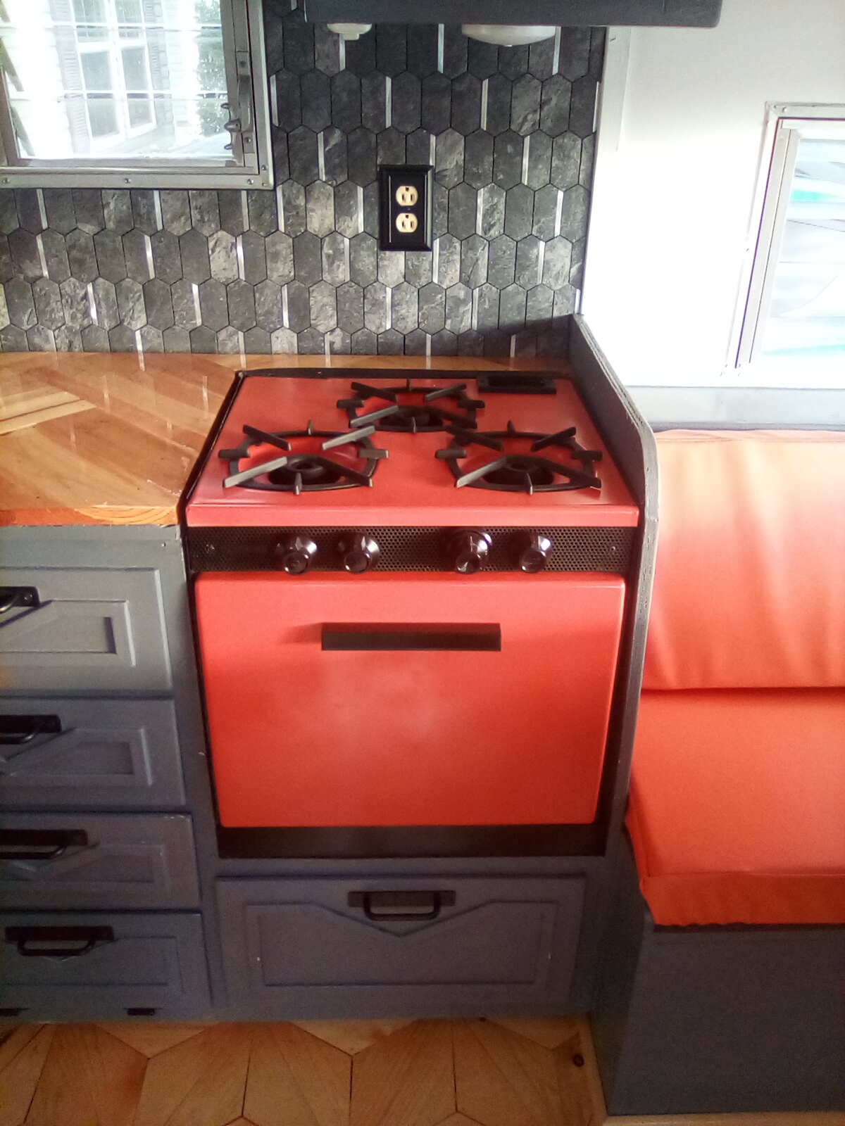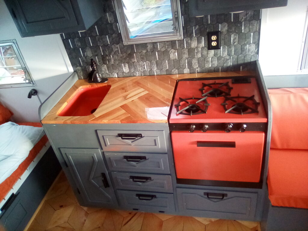 Systems: Equipped with a brand-new, robust 12-volt electrical system. This rig is designed for true glamping, giving you more power options than we can list for on/off-grid luxury. Remote controlled electric fan with moisture censor, discrete 12-volt TV, 16 lights that are custom with dimmer controlled switches, while still maintaining the upgraded ice-box for true vintage use and style. The dilapidated water system was replaced with a thermostatic heater.